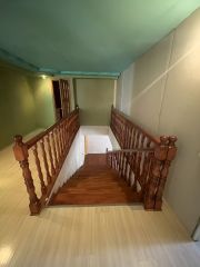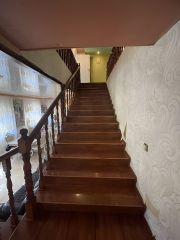 Этажи соединяет уверенная лакированная лестница из массива шириной 1,5м.