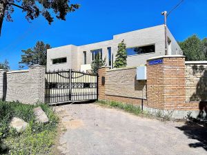 Ограждён качественным кирпичным забором (2,2 м высотой), который граничит с лесом. Есть калитка прямо в сосновый бор.