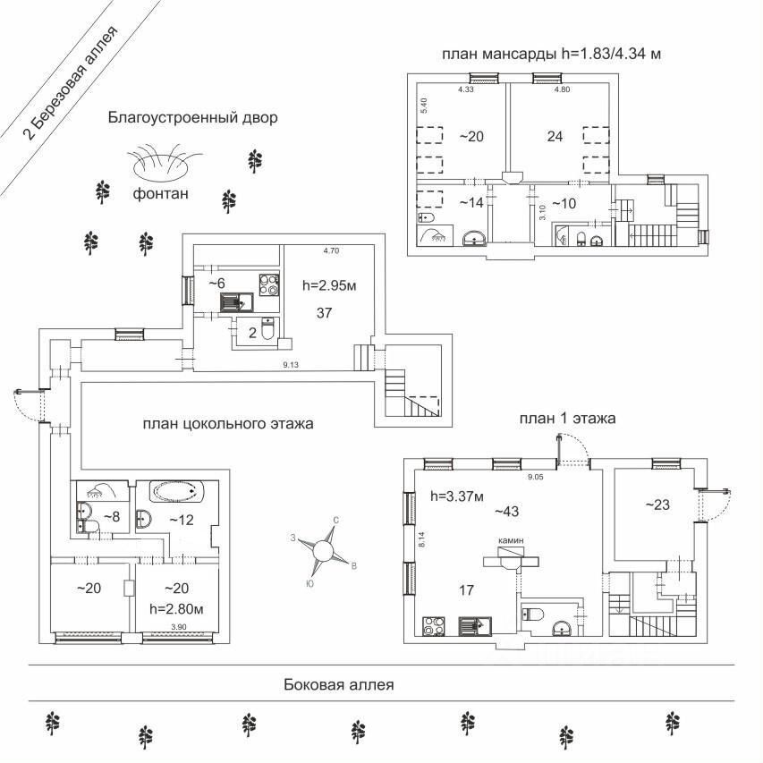 Без учета лестниц и коридора в цокольном этаже полезная площадь составляет 250 кв.м: