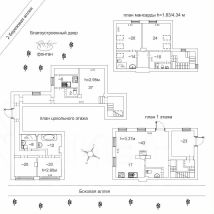Апартаменты находятся в малом флигеле (на 2 квартиры) и располагают четырьмя спальнями, две их которых с собственным санузлом, гостиной с камином и выходом на благоустроенную территорию дома, двумя холлами, пятью санузлами (в двух ванна). На цокольном и первом этажах оборудованы встроенные кухни. Два независимых входа.
