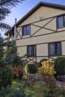 - Основной дом 240 кв.м. (газобетон 25 + утеплитель10 + керамические навесные фасады)
