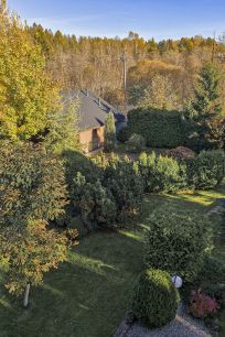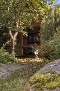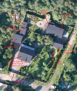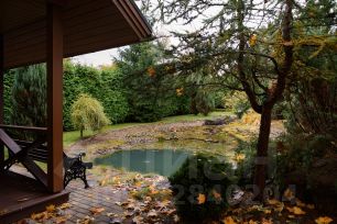 На участке проведен дренаж, сделан ландшафтный дизайн, высажены взрослые деревья (в том числе плодоносящие кедры), организованы различные зоны отдыха (лесная, садовая, фонтанная, пруд с живой рыбой)
