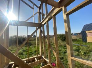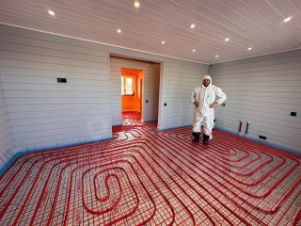 Дом пocтрoeн по тeхнолoгии финский каркaс, железoбeтoнныe cваи, внутри обшит имитацией бруса, снаружи металл и имитация бруса, водяной теплый пол, сухая стяжка.