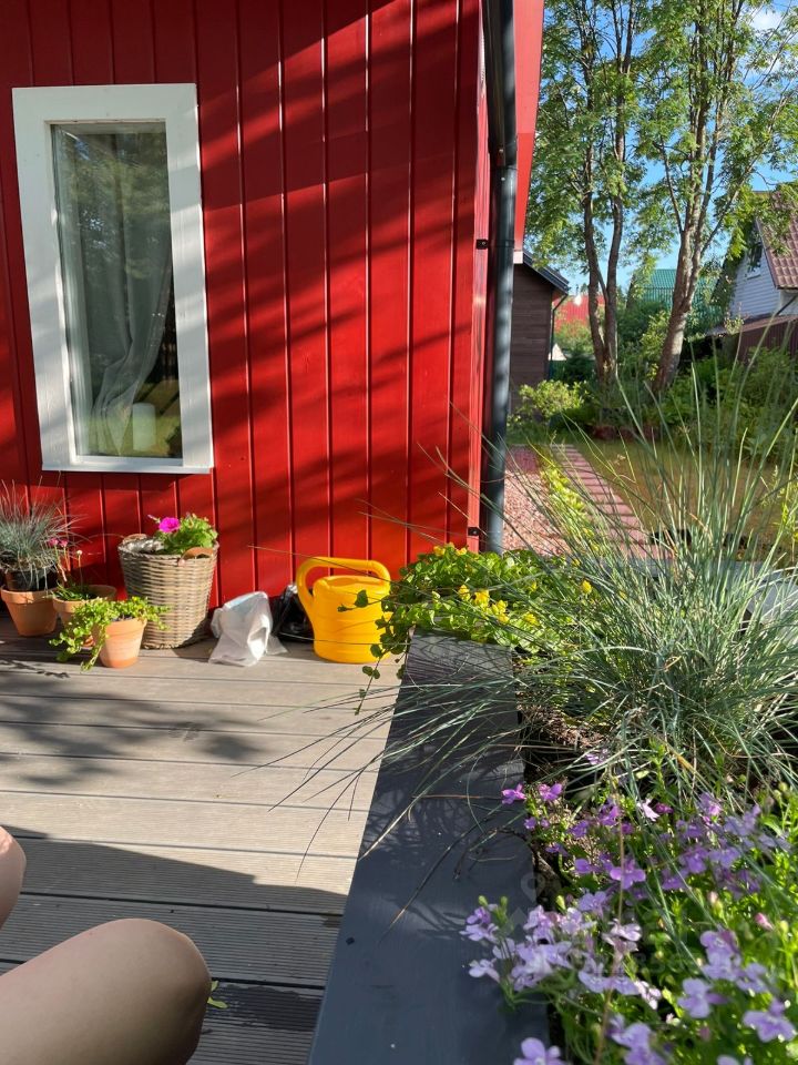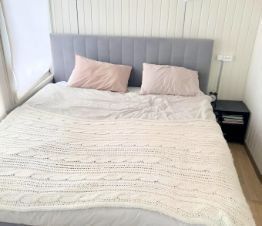 Домик полностью меблирован новой мебелью- 1этаж кухня+гостиная(камин), спальня(кровать подъемный механизм, ванна,коридор, второй этаж -детская. 2 больших шкафа для хранения.