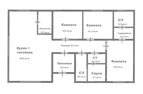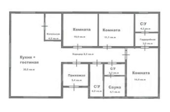 В доме три спальни, два санузла, сауна, кухня, гостиная со "вторым светом" и теплым полом, котельная, прихожая.