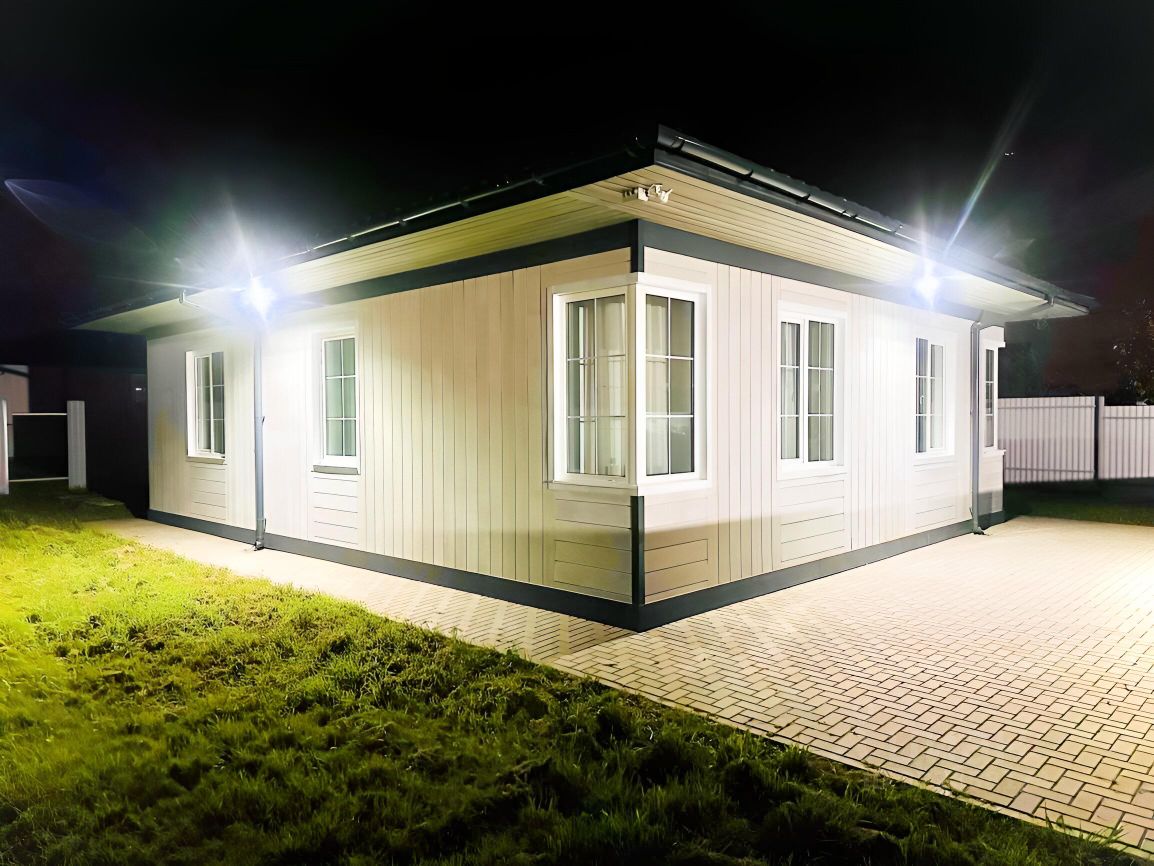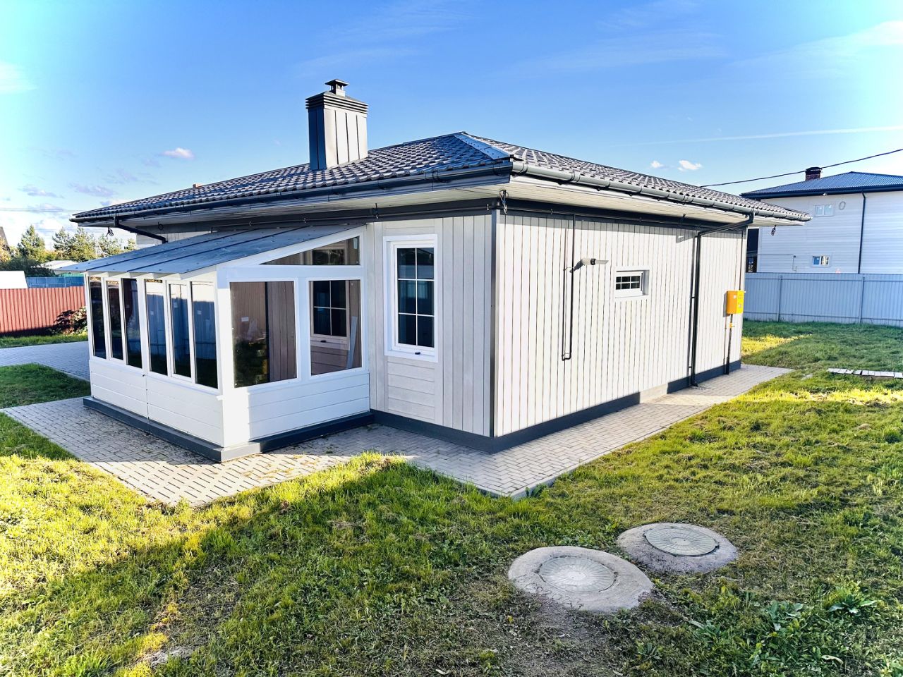 Новый капитальный дом в современном стиле и отделкой в населенном пункте д.Кипень. Фундамент - монолитная плита. Материал стен - газобетон, вентилируемый фасад фиброцементная планка (не горит, не цветет, не деформируется). Дом газифицирован, установлен газовый котел Baxi и газовая плита (договор с Газпроммежрегионгаз). Смонтирован дымоход и выполнена подготовка под монтаж дровяной печи-камина. По всему дому смонтированы теплые водяные полы, а так же выполнена разводка труб под монтаж радиаторов (дополнительно при необходимости в любом помещении). Вода - скважина глубиной 30 метров. Водоотведение - септик на 6 м3. Есть видео наблюдение, автоподсветка двора при движении в темное время суток. Благоустройство территории. Год постройки 2025. Адрес, прописка Ломоносовский район, деревня Кипень.