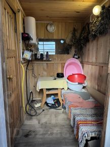 В доме три спальни, удобно разместить семью или гостей — есть общая кухня, где можно собраться за ужином или завтраком. Холодно не будет — основная отопительная печь отлично греет, её хватает для всех комнат.