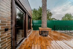 На участке в 6 соток расположен просторный двухэтажный дом с вторым светом, большой террассой и готовой каркасной баней. Дом построен из газобетона, фасад облицован кликерным кирпичом, что гарантирует его долговечность и надёжность. Утеплитель Роквал 200 мм. Баня строилась по финским технологиям. Фундамент - железобетонный. Крыша - мягкая кровля. В доме выполнена разводка водяных полов.