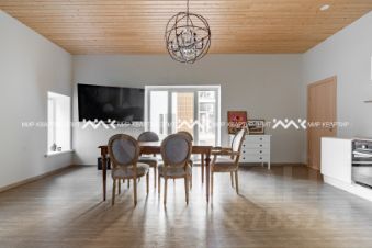 На территории участка также расположен небольшой, полностью готовый для проживания дом, общей площадью около 70 м2. Внешняя отделка большого и маленького домов сочетается друг с другом и создает единую гармоничную застройку.