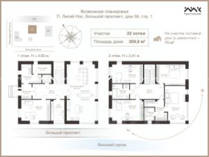 Арт. 75079767 Предлагается к продаже новый дом общей площадью 309 м2, в одной из самых престижных и удобных локаций Выборгского района - в поселке Лисий Нос. Участок размером 22 сотки имеет правильную форму и выровненную территорию.