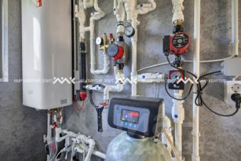 Автономные коммуникации обеспечивают полную независимость: собственная скважина с питьевой водой, септик для круглогодичного использования, электричество 30 кВт, возможность подключения газа (в посёлке проходит газопровод). Wi-Fi покрывает весь дом и участок без слепых зон.