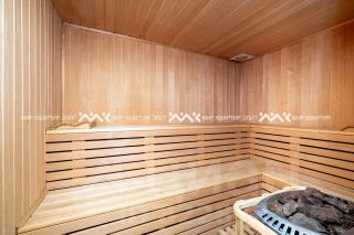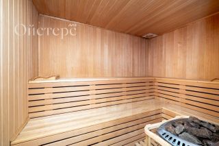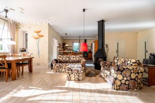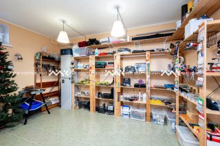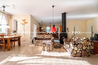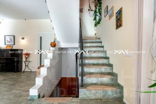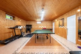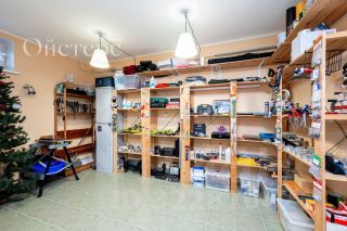 Планировка продумана для максимального комфорта: четыре спальни, просторная столовая-гостиная 80 м² с камином, кабинет, четыре санузла и две гардеробные. В цокольном этаже — сауна, бассейн, тренажёрный зал, мастерская, холодная комната и котельная. Чердачное помещение 80 м² можно также оборудовать под дополнительное жилое пространство.