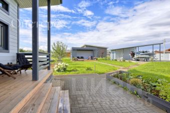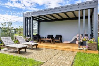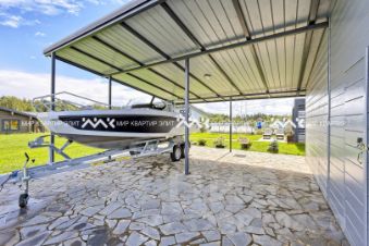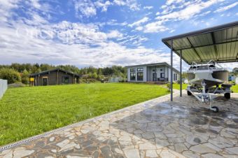 Участок благоустроен: есть собственная баня для наслаждения русскими традициями, беседка для летних обедов на свежем воздухе и зоны отдыха. А близость к озеру открывает возможности для отдыха у воды в любое время.