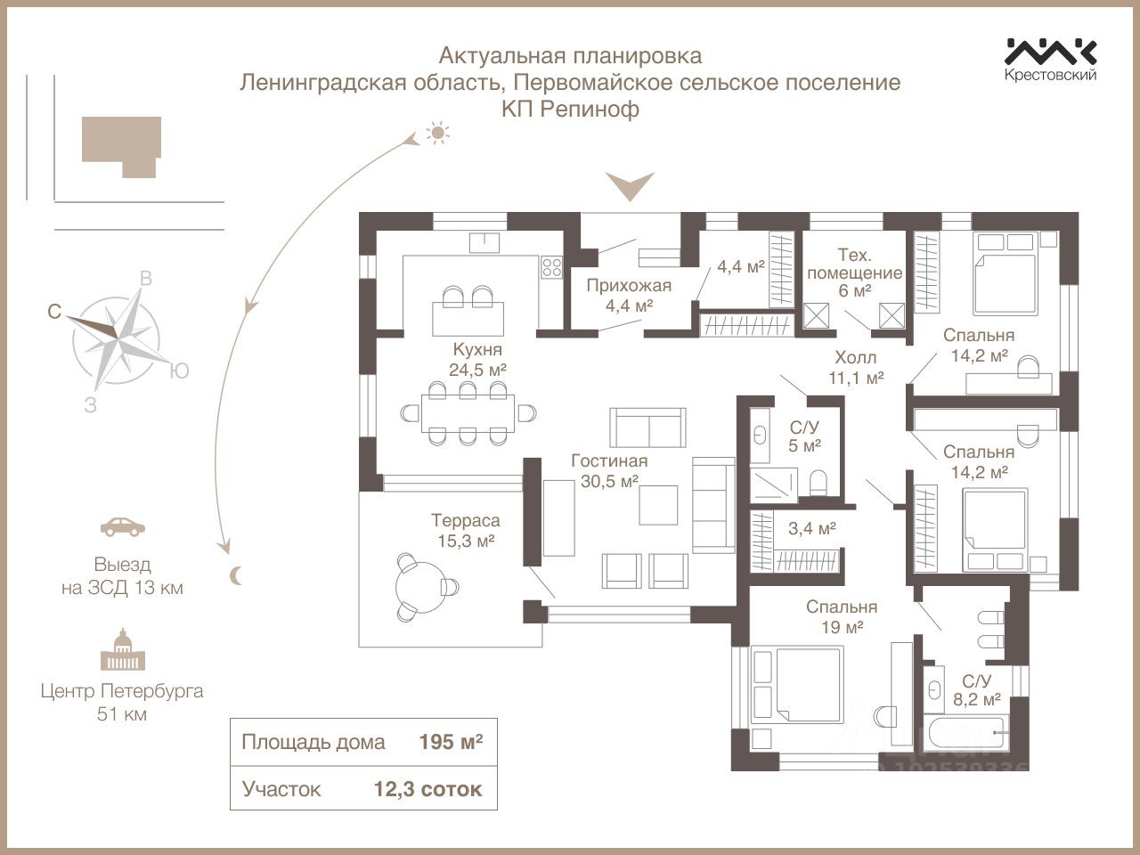 Арт. 114876074 Современный коттедж в охраняемом поселке Репиноф на участке 12,3 сотки — потрясающее жильё с продуманной планировкой в получасе от Санкт-Петербурга.