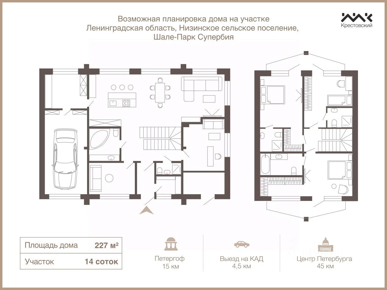 Дом ещё не построен, домовладение продаётся с обязательным строительством. Все представленные фотографии и планировки показывают уже готовый аналогичный проект в Шале-парке "Супербия", демонстрируя качество работы застройщика и итоговый результат.
