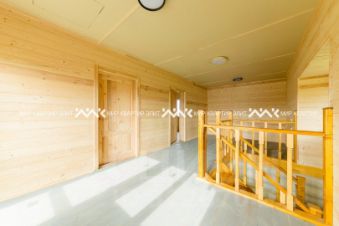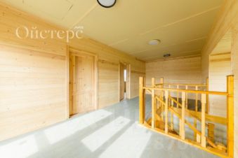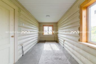 Первый этаж выполнен из отборных брёвен зимней валки на монолитной утеплённой плите. Планировка включает две прихожие, просторный санузел с ванной, большой зал с зоной кухни и печкой и спальню. Полы из керамогранита, установлены тёплые полы и система отопления.