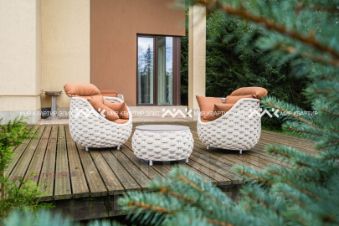 Коттедж расположен в деревне Юкки — локации, которую выбирают за максимальную близость города и отлично развитую инфраструктуру. До города время в пути составляет 15 минут, ближайшая станция метро — "Парнас". В пешей доступности несколько школ и детских садов.