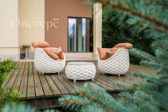 Стены толщиной более полуметра включают 400 мм газобетона, 120 мм утеплителя и фасадную краску. Дом стоит на монолитной плите толщиной 300 мм с армопоясом, что гарантирует надежность и долговечность конструкции.