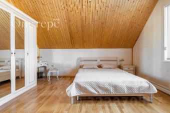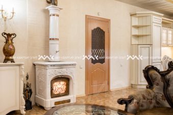 В посёлке есть газ, можно подвести его к дому. Вода централизованная поселковая, установлен септик, отопление обеспечивается электричеством и дополняется камином.