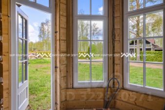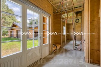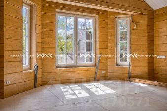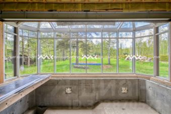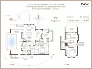 На территории уже построен гостевой жилой дом площадью 290 м². Он выполнен из клееного бруса, установлен на монолитной плите и подготовлен для внутренней отделки. В его планировке предусмотрены:
