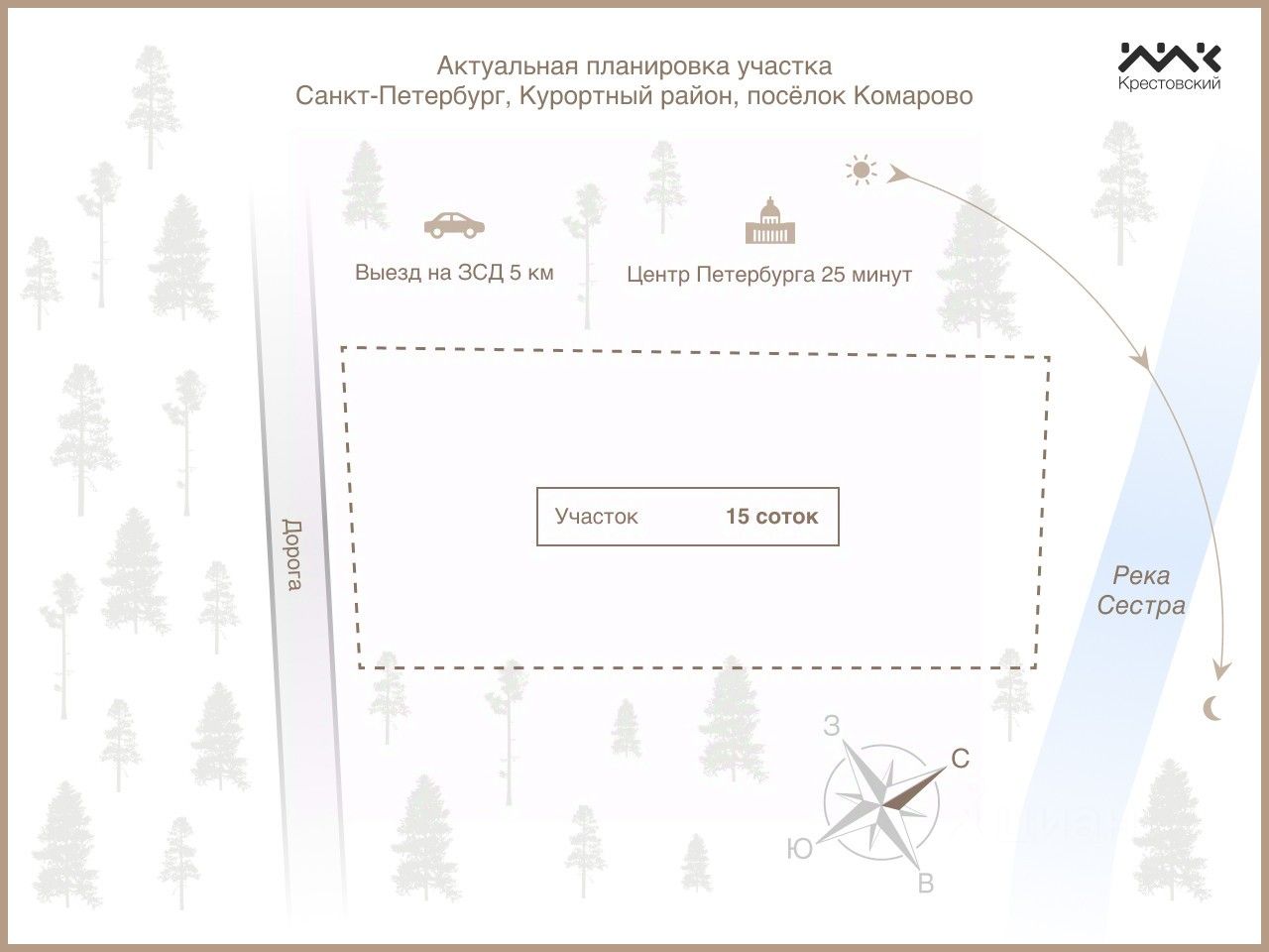 Арт. 109114482 Элитный участок 15 соток в коттеджном поселке "Комарово Парк" сосновый лес, река и 25 минут до Крестовского острова.