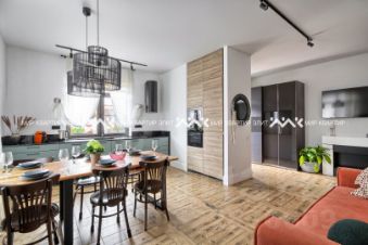 Арт. 116196755 Готовый таунхаус в стиле шале с лофтом и собственным участком — просторное семейное гнездо, где современный дизайн встречается с экологичными материалами и атмосферой загородного уединения среди природы.