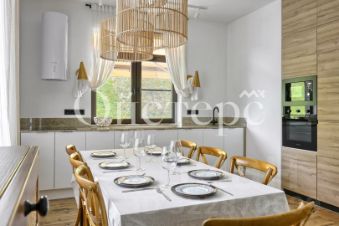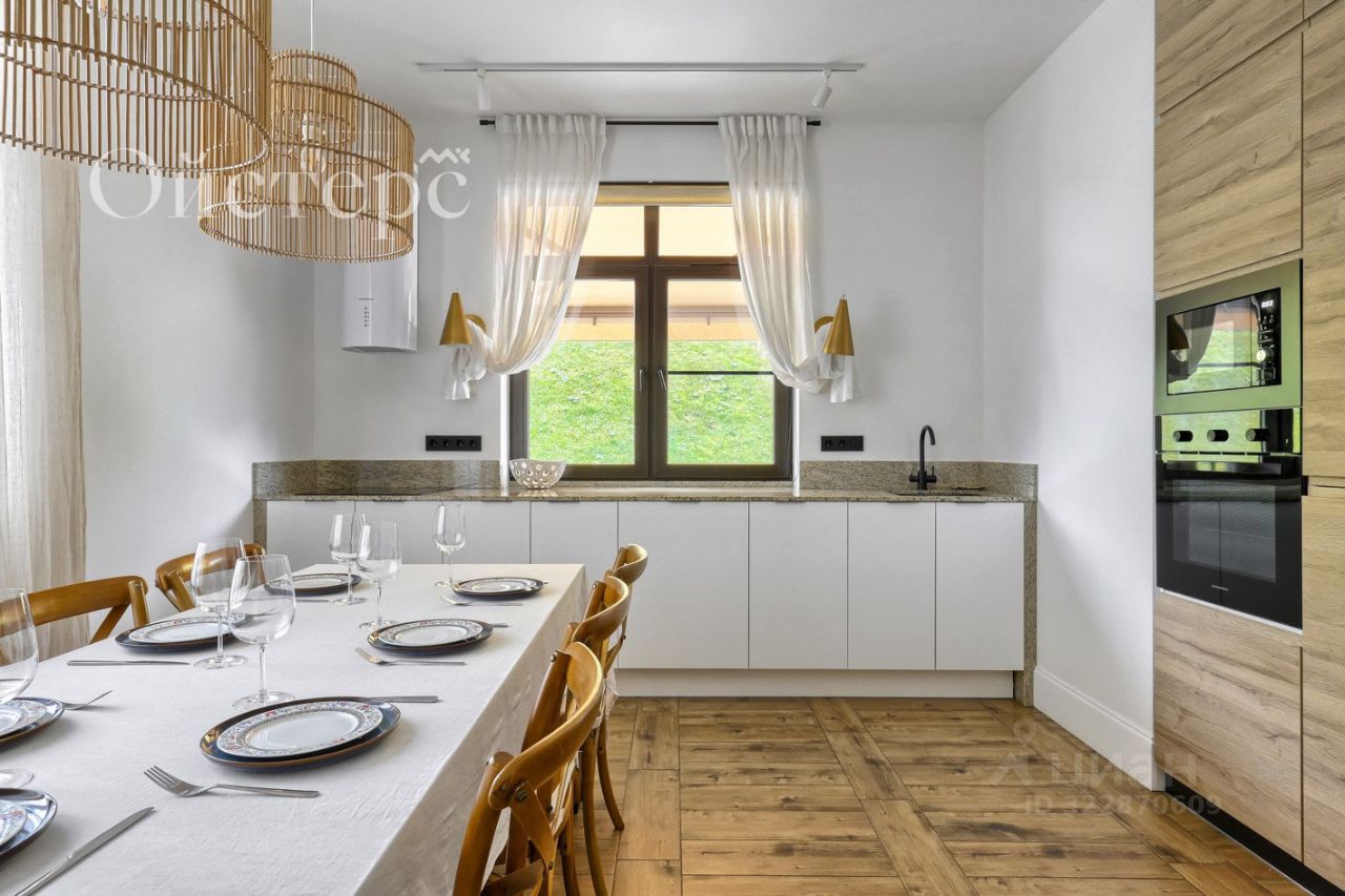 Стильный интерьер выполнен с использованием натуральных экологичных материалов. Дом полностью готов к заселению — можно сразу заезжать и наслаждаться загородным комфортом.