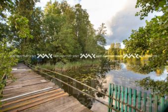 Участок прямоугольной формы расположен на небольшом возвышении, что обеспечивает живописные виды и защиту от подтопления. Есть прямой выход к Финскому озеру с возможностью купания и рыбалки, рядом песчаный пляж.