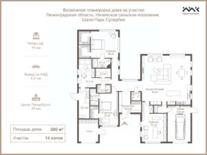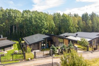 Дом пока не построен, домовладение продаётся с обязательным строительством. Все фотографии, планировка и характеристики дома взяты как пример у аналогичного уже реализованного проекта в этом же коттеджном посёлке, демонстрируя качество работы застройщика и итоговый результат.