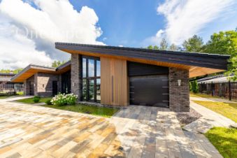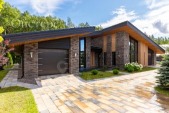 Одноэтажный дом площадью 300 м² предлагается в открытой планировке без перегородок — полная свобода для воплощения любых идей зонирования и дизайна. В комплектацию включены двое гаражных ворот с декоративными навесными перемычками и раздвижной портал-гармошка.