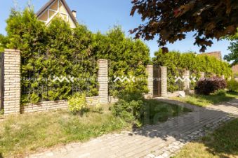 Приватность вашей жизни защищена от посторонних взглядов: участок огорожен забором, обвитым зеленым плющом, створки ворот заполнены непрозрачным поликарбонатом. Для автомобилей предусмотрен навес на 2 места, можно построить возле дома гараж. Участок ухожен и облагорожен: сделан ландшафтный дизайн, проложены мощеные дорожки, высажены растения. Можно играть в футбол на траве, установить детскую площадку и спортивные снаряды.