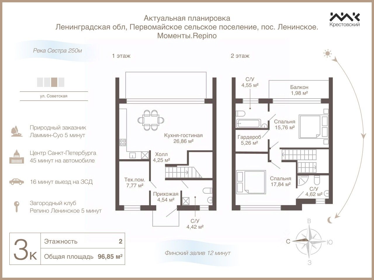 • 5 минут до загородного клуба "Репино-Ленинское";