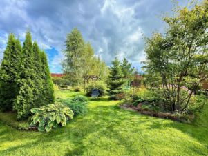 Невероятно красивый и полностью благоустроенный участок 9 сот, правильной квадратной формы. Множество декоративных и плодовых посадок взрослые хвойные растения, сосны, голубые ели, туи, цветы, яблони, груши, вишня, теплица. Участок поднят, выровнен, сделан газон, дренаж, сделаны дорожки, парковка на две машины с навесом. Огорожен по периметру деревянным забором на ленте, установлены автоматические ворота и калитка. Также, на участке есть хоз.блок