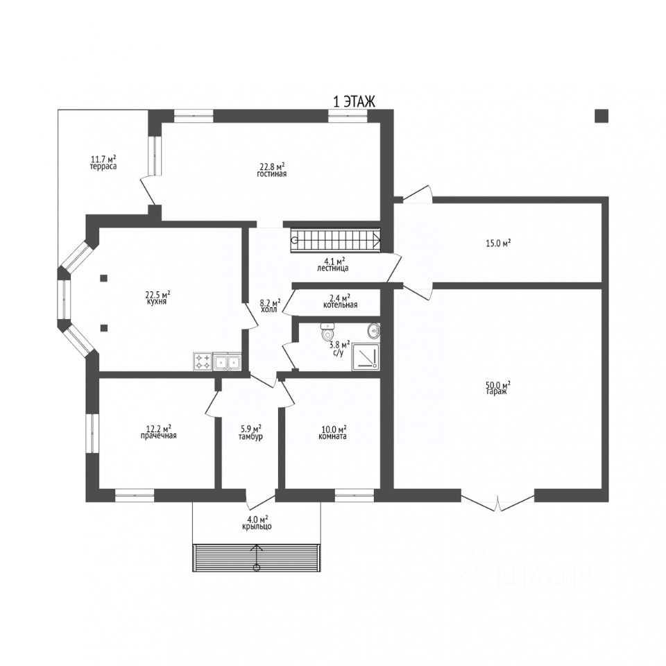 Отопление обеспечивается индивидуальным котлом, что гарантирует эффективное и экономичное поддержание тепла.