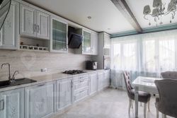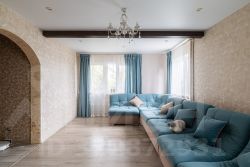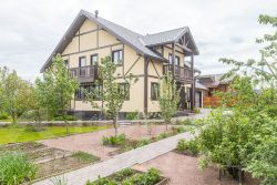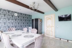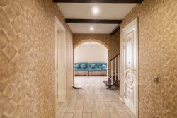 Этот двухэтажный дом общей площадью 214 кв. м расположил в себе просторные и светлые комнаты с евроремонтом и натяжными потолками высотой 2,5 м.