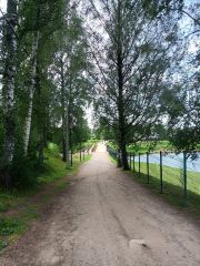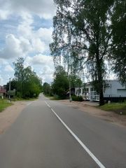 Дорога асфальтирована, есть место для парковки автомобиля.