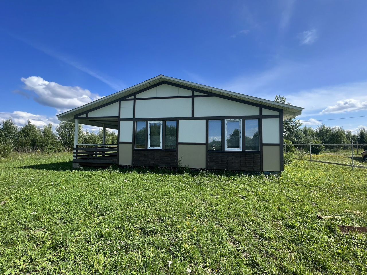 oдноэтажный жилой дом с грамотной планировкой построен в 2023 году по площадь дома 122 кв.м.(11*11.3) фундамент- монолитная плита (8*10) утеплена Пеноплекс 100мм, сделана разводка труб под теплый пол, терраса на сваях 24кв.м. стены - каркас доска 150*50 и брус 10*150 утеплитель 130мм. , кровля -профлист, водоснабжение - скважина 15 м, отопление -оборудованы водяные теплые полы ( в системе тосол) по всей площади дома , электричество 15 кВт, подключение оплачено . канализация локальная. перекрытия брусв доме установлены двухкамерные стеклопакеты