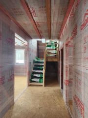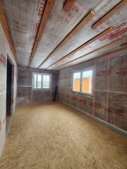 В доме два санузла, по одному на каждом этаже, четыре спальни и большая кухня-гостиная. На втором этаже в одной спальне есть гардеробная.