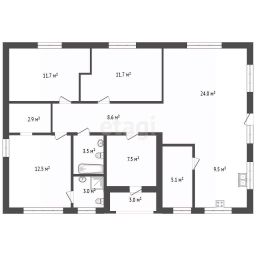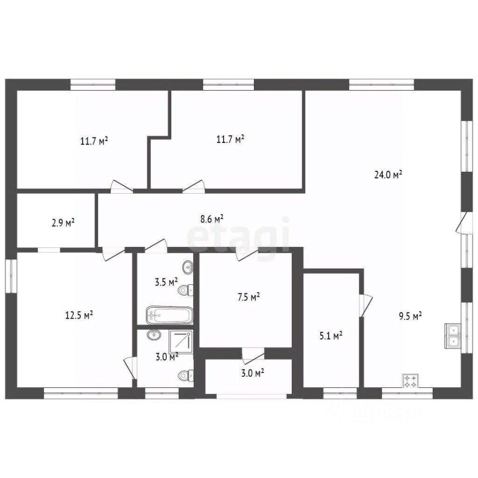 просторная кухня-гостиная с панорамным остеклением, 3 спальни (включая