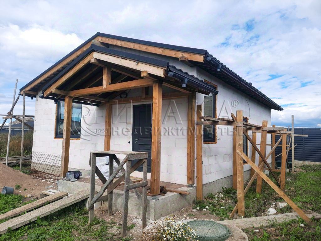 Дом из газобетона на монолитной плите, высококачественная шумоизоляционная крыша, двухкамерные стеклопакеты Века и дверь с терморазрывом. В доме просторная кухня-гостиная общей площадью 44 кв.м., которую можно разделить на 2 части и выделить еще одну просторную комнату, так как предусмотрено два выхода и несколько окон. Изолированная спальня 9,8 кв.м. с отдельным выходом на улицу. Приобретен настоящий камин на дровах с чугунными кольцами для приготовлерия еды, 9, требует только установки на выбранном месте в доме. Техническое помещение с санузлом 10 кв.м. Проёмы в стенах спроектированы для установки откатных дверей, что удобно сэкономит место. Новые двери в наличии и ждут установки.
