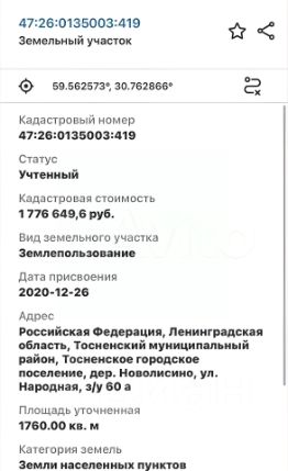 Адрес: Лен обл., Тосненский р-н, дер. Новолисино, ул. Народная, уч. 60а.