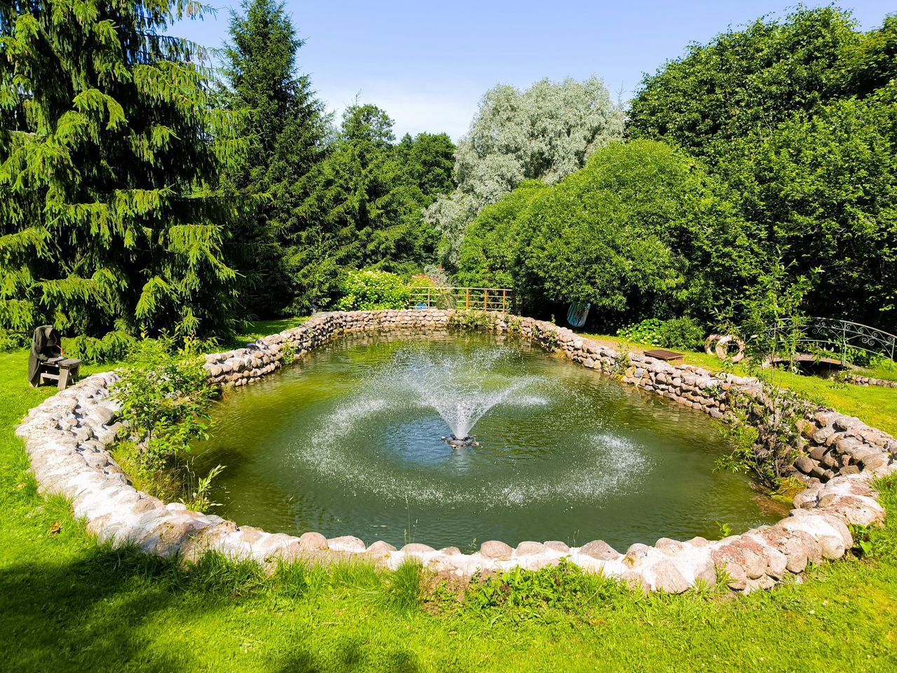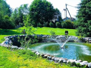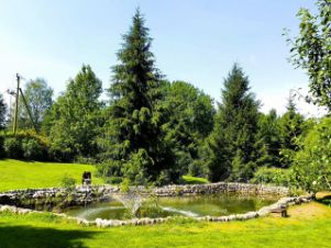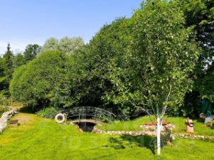 - Живописное место, выполнен ландшафтный дизайн, особенности местности оригинально дополняют участок. По участку проходит сухой ручей, сохранены многолетние ели, деревья и кустарники. Изюминкой участка является естественный пруд, наполняющийся водой из подземных ключей. В пруду водятся такие виды рыб как карп, карась, толстолобик, линь, белый амур. (Улов гарантирован, даже не выходя за территорию участка).