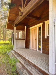 Построен из финского клееного бруса Honka по проекту Lumme в лучших традициях финской архитектуры.