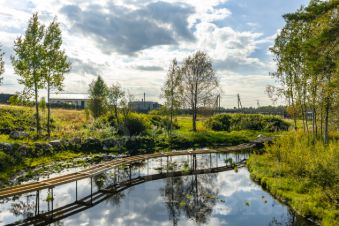 Центральный парк площадью 10 000 м²: прогулочные тропы, спортивные зоны, детские площадки, тихие уголки у водоёма;