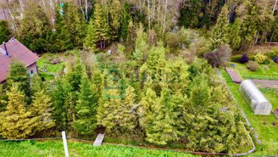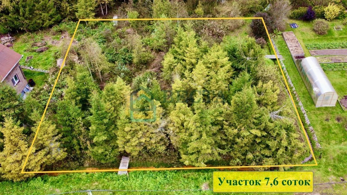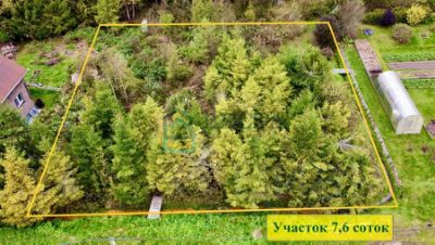 Земельный участок 7,6 соток, сухой, правильной формы, проведено межевание. Участок граничит с лесом, на территории растут молодые ели, малина, часть участка уже разработана.