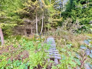 Главным преимуществом является то, что участок граничит с лесом, очень уединенное и тихое место. Соседи с двух сторон. Тупиковая дорога ведёт прямо до участка, нет проезжающих машин.