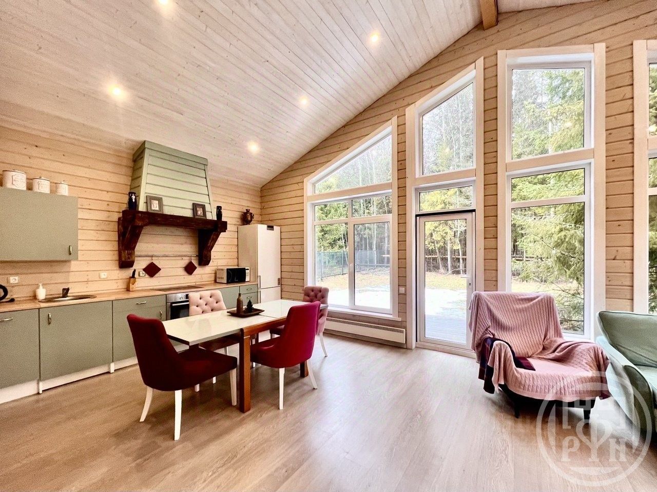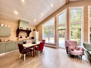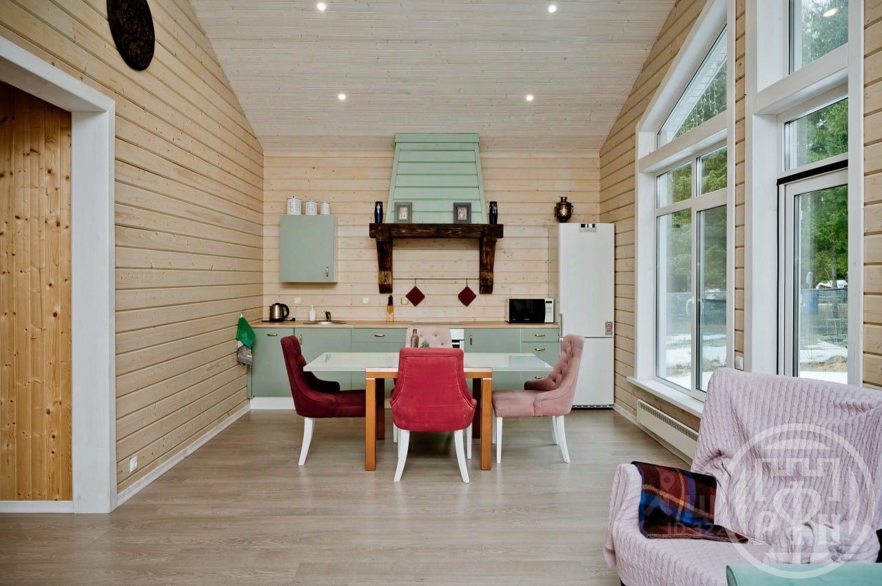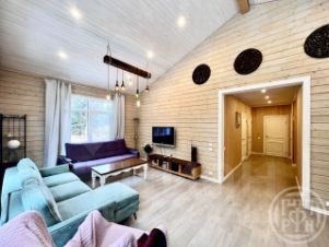 В доме три изолированные спальни 12,11 и 10кв.м. Санузел оборудован душевой и тёплыми полами. Большая кухня-гостиная с панорамными окнами и вторым светом более 33 кв.м. Просторные холлы с отдельной гардеробной.