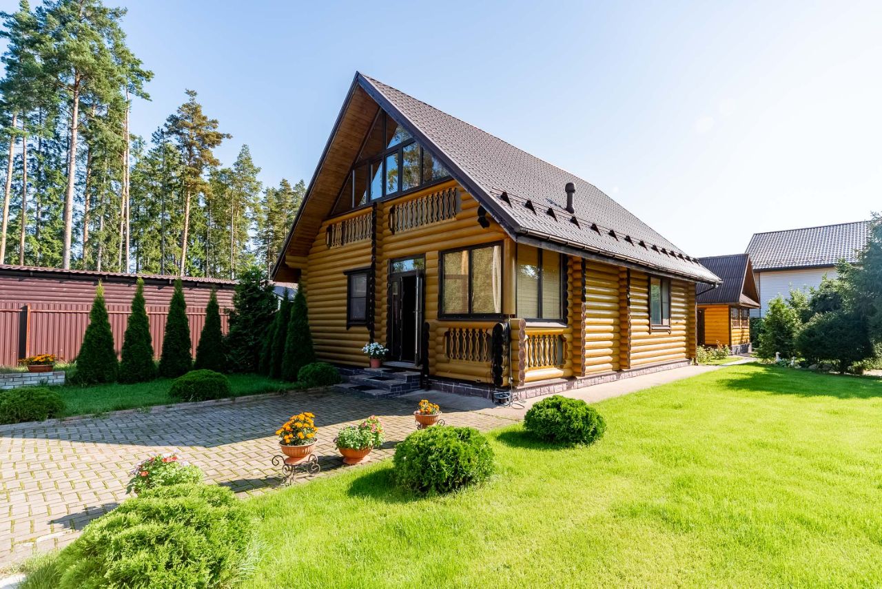 Дом из оцилиндрованного бревна с баней и участком 12 соток на берегу живописного озера
