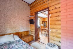 На участке расположена баня из такого же бревна: парилка, помывочная, комната отдыха и гостевая спальня на втором этаже. Это отдельное пространство для отдыха и приёма друзей.