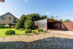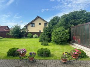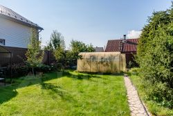 Участок площадью 12 соток благоустроен и грамотно зонирован. Хвойные посадки и многолетние цветники создают зелёное обрамление, беседка становится центром летних встреч, парник позволяет выращивать овощи. Для автомобиля предусмотрен навес с откатными воротами. В комплекте остаются газонокосилка и снегоуборочная машина.